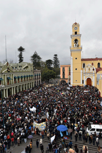 Acto seguido, iniciaron con las estrofas del Himno Nacional Mexicano, a cuya entonación se sumó el grueso del contingente reunido en la principal plaza pública