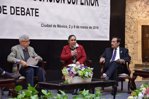 La Rectora participó en el foro “La legislación y el financiamiento”, efectuado el 2 de marzo en la Ciudad de México y organizado por la Asociación Nacional de Universidades e Instituciones de Educación Superior (ANUIES) y el Senado de la República.