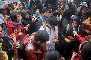 Pero ni la lluvia ni la concentración cesaron y jóvenes acompañados con jaranas, pandero, quijada y maracas, sonaron El buscapié y La Bamba. Es más, por ahí se escuchó un solo de flauta haciéndose acompañar del
