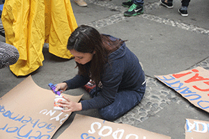 En la Facultad de Psicología, desde muy temprana hora, los estudiantes se reunieron en la explanada principal para elaborar los carteles que mostrarían en la manifestación, en los que plasmaron con ingenio y creatividad su indignación ante la situación financiera que amenaza a la educación pública del estado