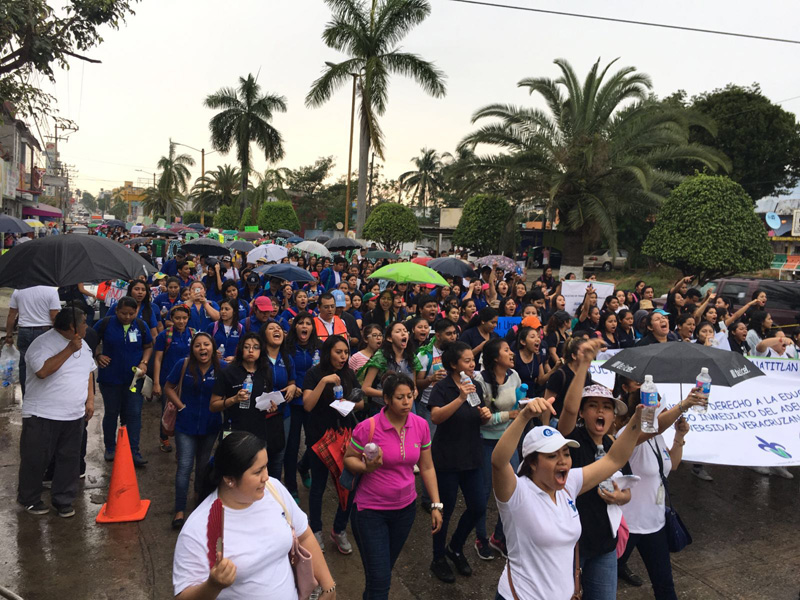 En Minatitlán, los manifestantes marcharon en compañía del vicerrector Jorge Alberto Andaverde Arredondo, la directora de la Universidad Veracruzana Intercultural (UVI), Shantal Meseguer Galván, y la delegada regional de la Comisión Estatal de Derechos Humanos, Xóchitl Burdett Torruco. Andaverde Arredondo coreó con los manifestantes: “Violencia no, educación sí” y agradeció a cada una de las facultades presentes por mantenerse firmes y respaldar a la institución.