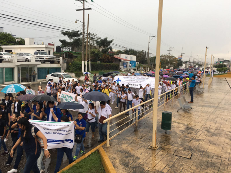 Como un ejercicio de libre manifestación, la comunidad universitaria se reunió en Coatzacoalcos, en la Plaza de la Paz; en Minatitlán, en la Unidad de Ciencias de la Salud y Trabajo Social, y en Acayucan, en el punto conocido como la Ex Llanura. La “Marcha por la defensa de la UV y la educación superior” se realizó de forma simultánea en las tres ciudades, de forma pacífica y sin incidentes.