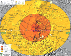 mapa de peligros del la zona circundante al Pico de Orizaba.