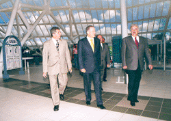 al ejecutivo hidalguense durante un recorrido por la zona universitaria
