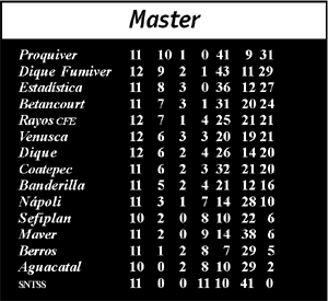 master, cancha uno: 9:00 hrs. Deportivo Dique-SNTSS, 11:00 hrs. RHM