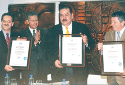 al rector Víctor Arredondo, sendas certificaciones iso-9001:2000