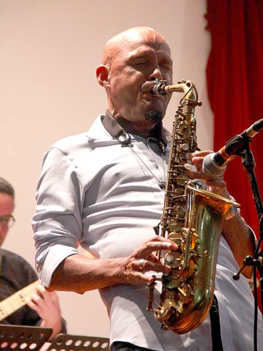 El conjunto musical que acompañó al saxofonista durante la primera parte del programa estuvo conformado por los maestros del Jazzuv: Rafael Alcalá al piano, Aldemar Valentín con el bajo, Renato Domínguez en la batería, Francisco Wilka en las percusiones y Tim Mayer con el saxofón tenor, alternando en algunas melodías con Alejandro Bustos.
