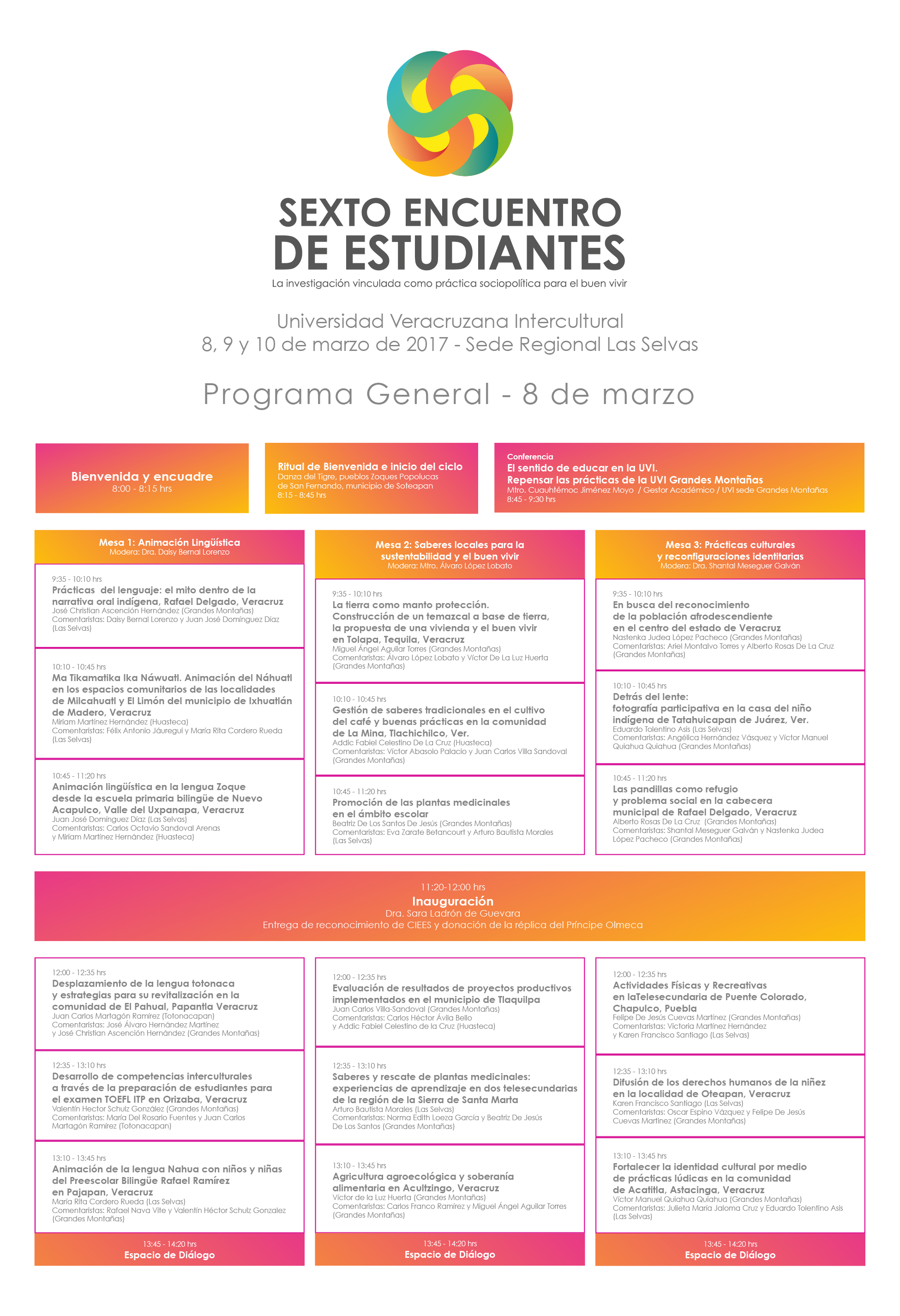 Sexto Encuentro de Estudiantes, marzo 8 al 10, 2017