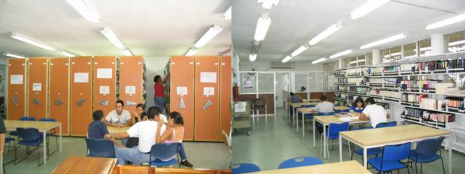 Dimensiones de la Biblioteca: aproximadamente 338.64 m2 de superficie, Espacios de oficina para personal administrativo: 7.5 m2, 2 salas de estudio grupal: 11.47 m2 cada una, Cubículos individuales: 2, Equipo de cómputo con acceso a bases de datos y catálogos en línea: 6, Estantería y anaqueles suficientes para alojar el material bibliográfico existente: Sistema compacto móvil, tesis nacionales de licenciatura: 1271, Maestría 80 y Especialización 8, Doctorales nacionales 2 y extranjeras 70, Colección de material audiovisual que incluye aproximadamente 70 video grabaciones, 131 discos compactos. M. Los acervos se encuentran clasificados de acuerdo a las normas de la asociación de bibliotecarios de instituciones de enseñanza superior y de investigación (ABIESI), y cumplen satisfactoriamente en calidad y cantidad con los requerimientos de los estudiantes e investigadores del programa. El sistema de clasificación utilizado.