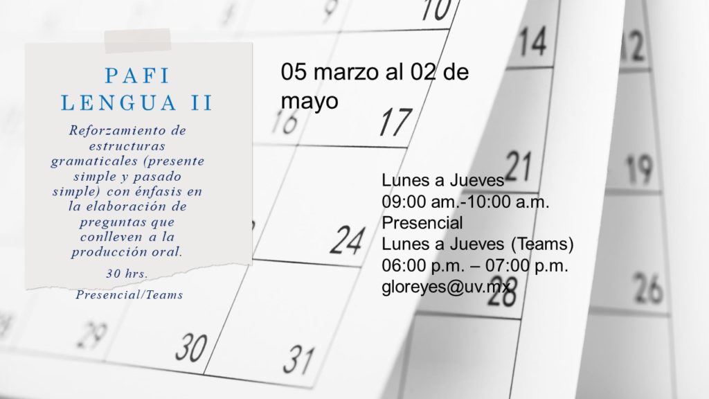 PAFIS Feb – Jul 2024 Programas de Apoyo a la Formación Integral para estudiantes del AFBG INGLÉS II /LENGUA II