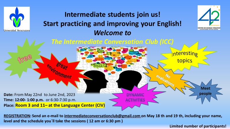 Registration: Send an e-mail to intermediateconversationclub@gmail.com on May 18th an 19th, including your name, level and the scheduel you’ll take the sessions (12 a.m. or 6:30 p.m)