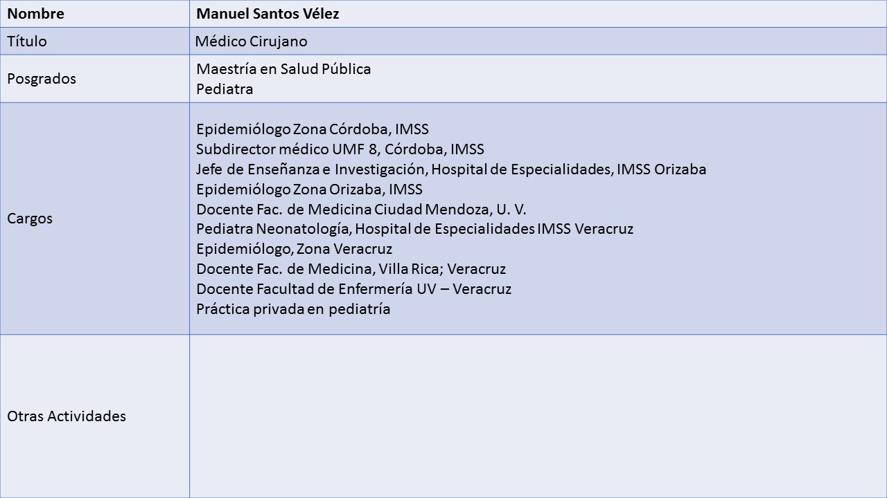 | Santos Vélez Manuel | msantos@uv.mx | Síntesis Curricular |