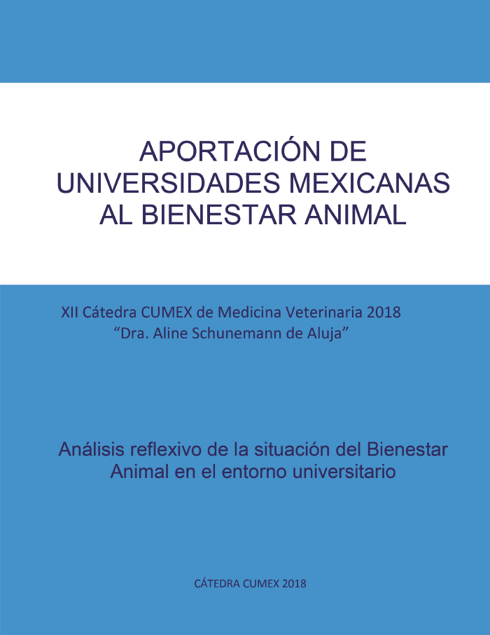 Aportación de Universidades Mexicanas al Bienestar Animal XII Cátedra CUMEX de Medicina Veterinaria 2018, «Dra. Aline Schunemann de Aluja» Análisis reflexivo de la situación del Bienestar Animal en el entorno universitario ISBN 978-84-18080-34-0