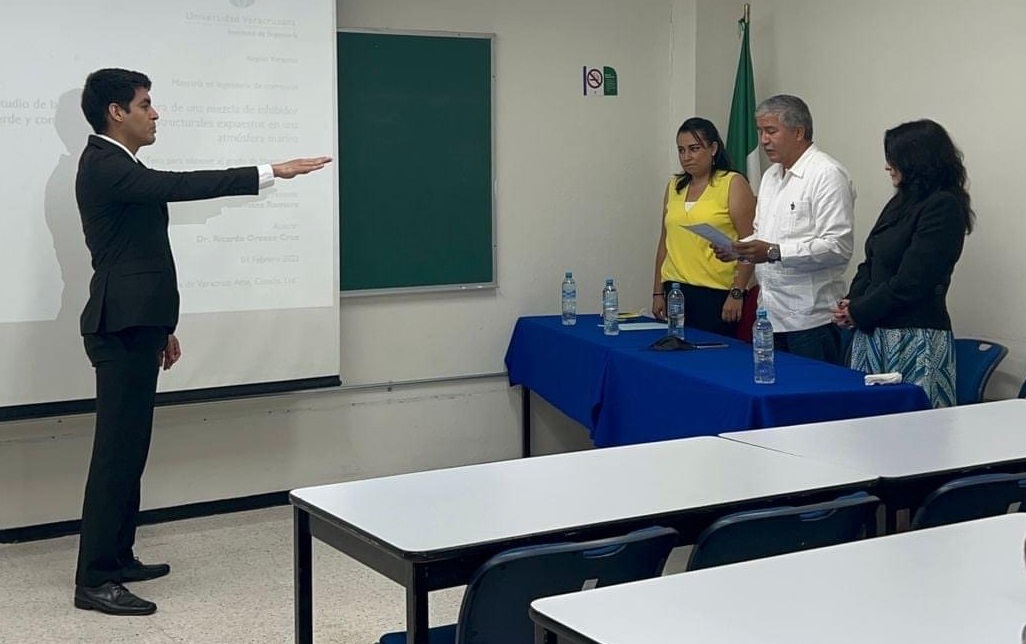 presentó la defensa de su trabajo de investigación titulado «Estudio de la capacidad inhibidora de una mezcla de inhibidor verde y comercial en metales estructurados expuestos a una atmósfera marina», en la Sala Audiovisual del Instituto de Ingeniería.