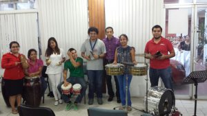 El participante, aprecia la importancia de la percusión menor en la música tropical desarrollando sus habilidades auditivas, distinguiendo los diferentes colores, timbres y ritmos a través de sesiones de práctica de dichos instrumentos.
