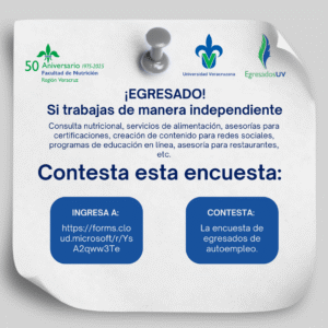 La presente encuesta tiene como finalidad identificar la situación del egresado de la Licenciatura en Nutrición relativa a su formación profesional, perfil profesional, situación laboral y social, tendencias de la profesión y prospectiva de la disciplina, el grado de satisfacción respecto a la pertinencia del programa, para implementar acciones conducentes al mejoramiento del plan de estudios, oportunidades de empleo, así como de formación y/o actualización de la disciplina; por lo cual le solicitamos responda a los planteamientos llenando los espacios o marcando la respuesta que considere conveniente. Es fundamental la veracidad de sus respuestas para el logro de los fines de este estudio, la información obtenida será totalmente confidencial.