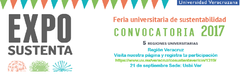 Este año estarán participando nuevamente las 5 Comisiones Regionales: Coatzacoalcos-Minatitlán, Orizaba-Córdoba, Poza Rica-Tuxpan, Xalapa y Veracruz. El evento se llevará a cabo de manera simultánea el día 21 de septiembre de 2017. Dado que cada región tiene sus propias características y autonomía, la ExpoSustenta tendrá diferentes miradas, matices y formatos, por lo que en cada una de ellas se vivirá de manera muy diversa pero con un objetivo en común: crear un espacio de reflexión, participación y compromiso activo en torno a la sustentabilidad, a través del intercambio de experiencias universitarias y extrauniversitarias para, consecuentemente, fortalecer la dimensión de la sustentabilidad en la docencia, la investigación, la vinculación y la administración de la UV, como lo establece el Plan Maestro para la Sustentabilidad de la Universidad Veracruzana.