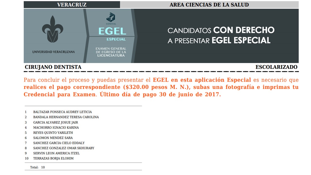 Estudiantes con derecho a presentar EGEL-CENEVAL