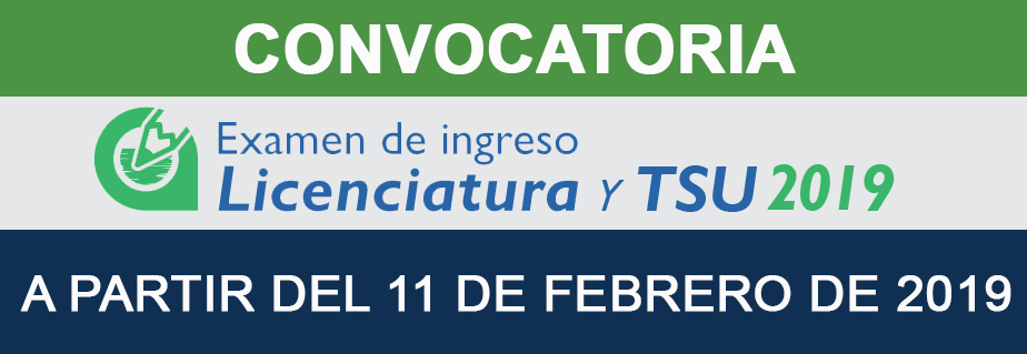 CONVOCATORIA DE INGRESO A LICENCIATURA Y TSU 2019 Hacer «click» en la imagen para ir a la convocatoria