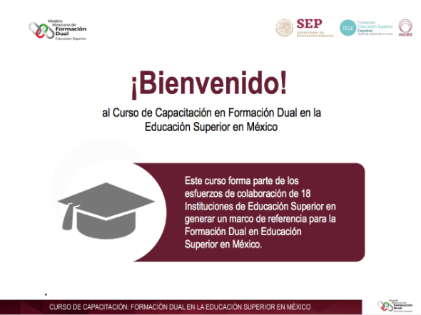 El curso tiene específicamente la finalidad capacitar a las autoridades, académicos y administrativos interesados en conocer las bases conceptuales y los aspectos relevantes de esta opción educativa reconocida por la SEP en el Acuerdo No. 18/11/18, que favorezca a la implementación del Modelo Mexicano de Formación Dual en la Educación Superior, en 18 Instituciones de Educación Superior, entre ellas nuestra Casa de Estudios.