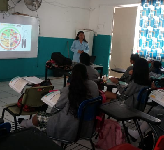 En la Casa UV Molino de San Roque realiza su servicio social Abigail, estudiante de la Facultad de Nutrición. Para aportar a la comunidad mejoras en la salud, semanalmente asiste a la Escuela Telesecundaria “Emiliano Zapata” donde imparte el taller «Orientación alimentaria y nutricional». Con la participación de 63 alumnos de primer año Abigail tiene programado incluir temas como el plato del bien comer y la jarra del buen beber, advertir sobre patologías como diabetes y trastornos de la conducta alimenticia (TCA) que pueden desencadenarse por una mala alimentación, dar a conocer los alimentos ultraprocesados y las repercusiones que pueden causar en la salud además de promover la actividad física entre los alumnos. Es así como los brigadistas comparten sus conocimientos y capacitan a los jóvenes para que tengan un desarrollo saludable.