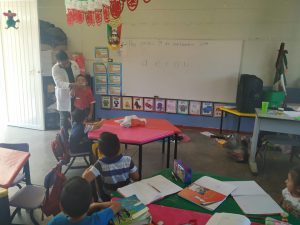 Erik Alexis Romero, Alexis Daniel Ortega estudiantes de odontología y Luis Jiménez Galindo de enfermería, en coordinación con el DIF Municipal, ofrecieron pláticas en la escuela primaria «General Ignacio Allende» y el centro preescolar indígena «Josefa Ortiz Domínguez».